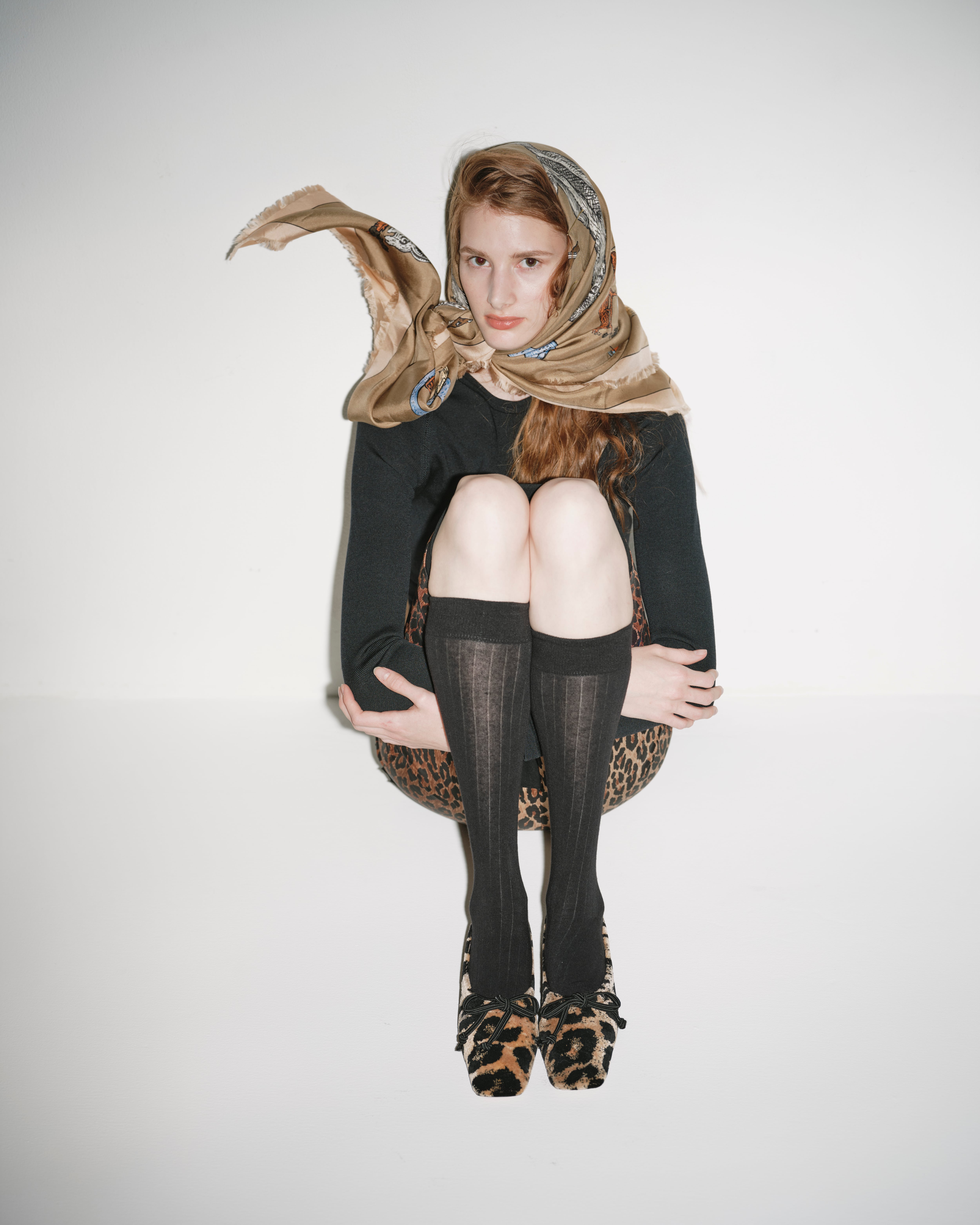 大胆な柄は存在感があるものの上品で、スタイリングに華を添えます。