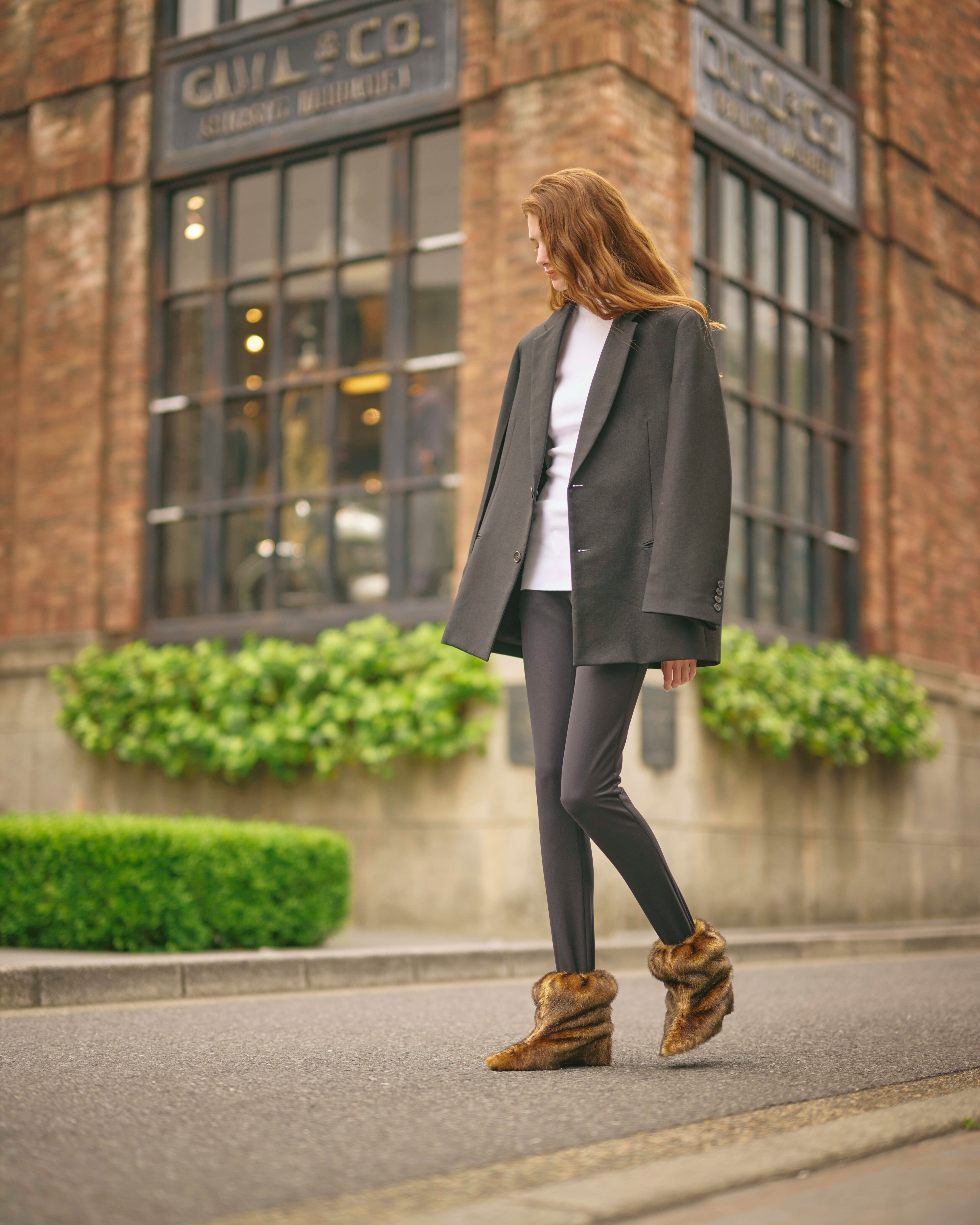 まるでマフをまとっているかのような存在感がスタイリングをアップデートしてくれる。