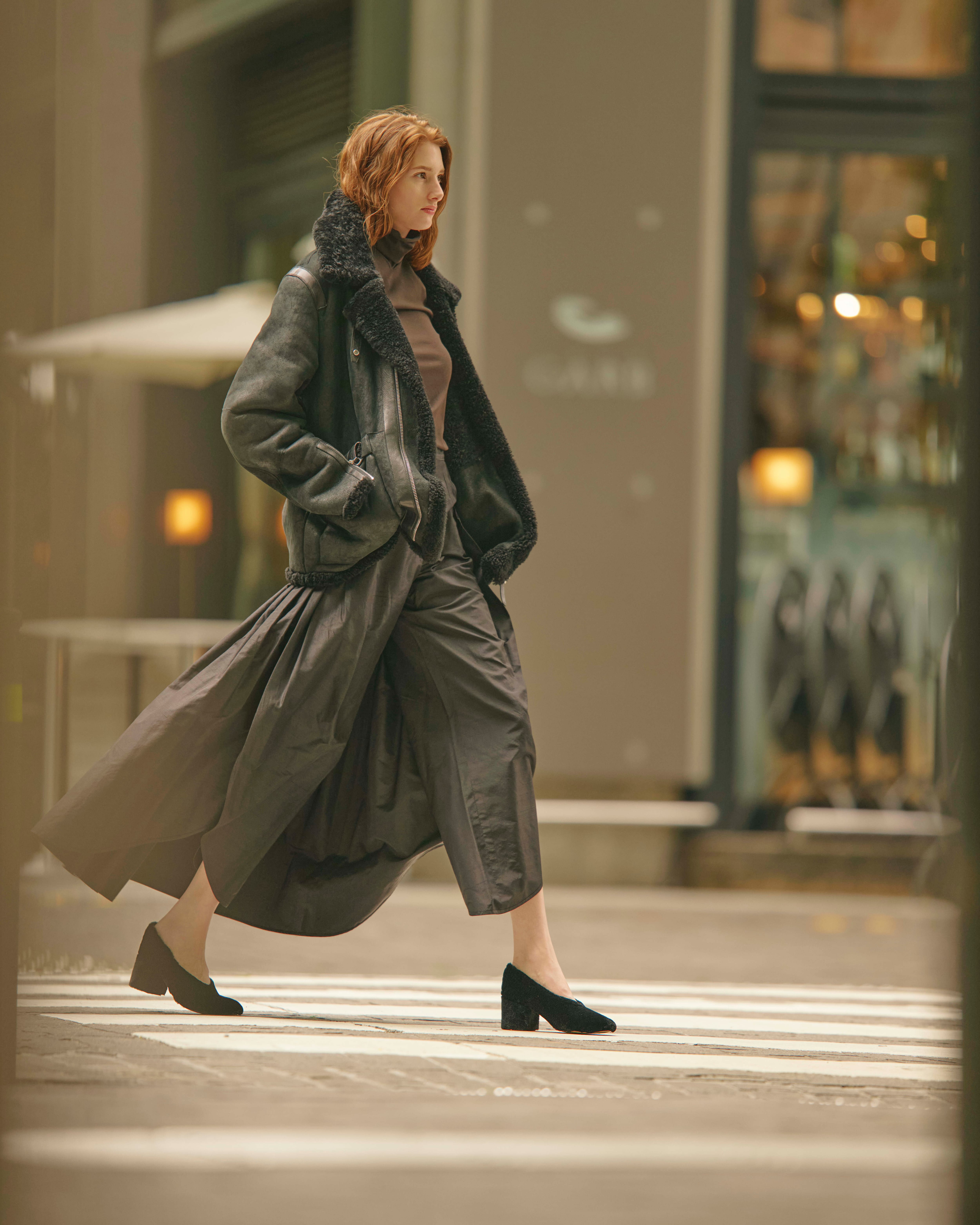 上質なフェイクファーでチャンキ―ヒールまでも包み込み、モードなスタイリングを完成させます。極上な柔らかさも魅力です。