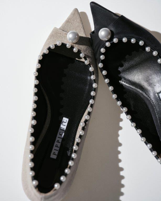パールのパイピングと1粒パールが足元を華やかに彩るANNA木型の新作。