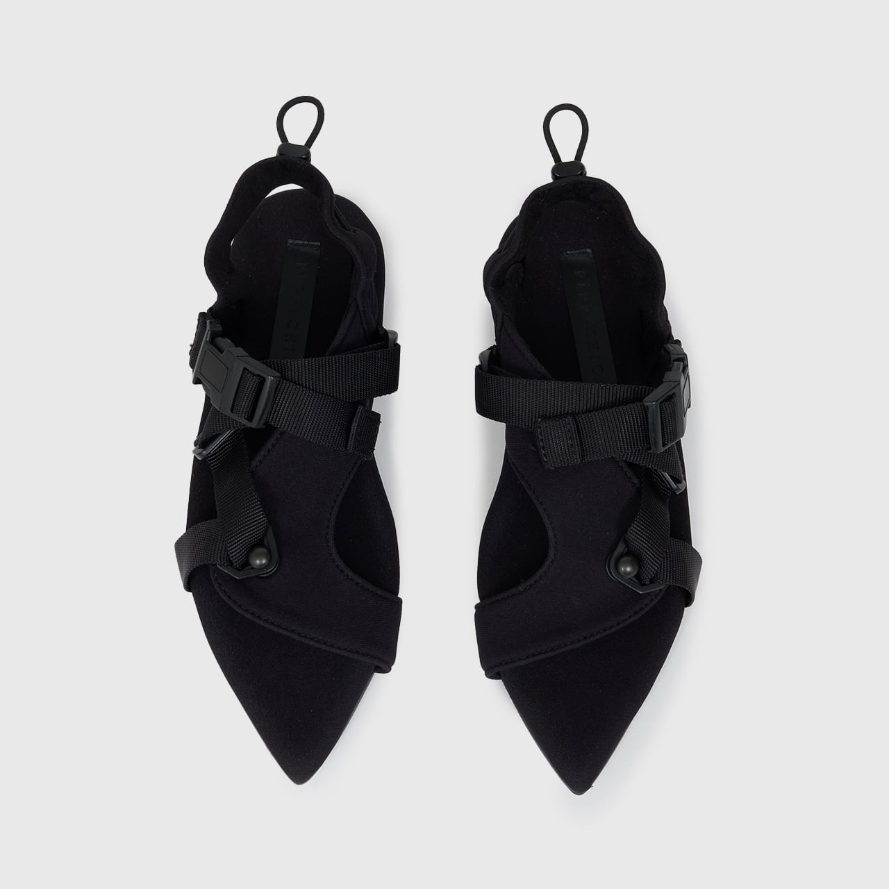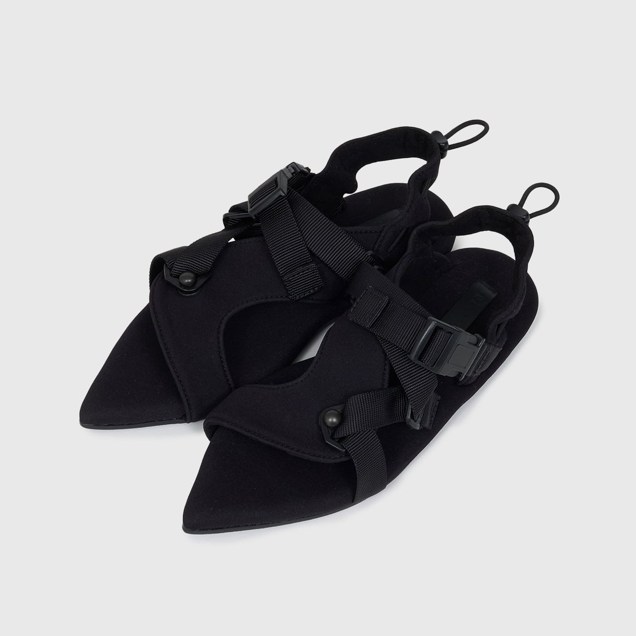 スポーツサンダルでは珍しいポインテッドトゥ。足元をシャープにすっきりとモダンな印象です。