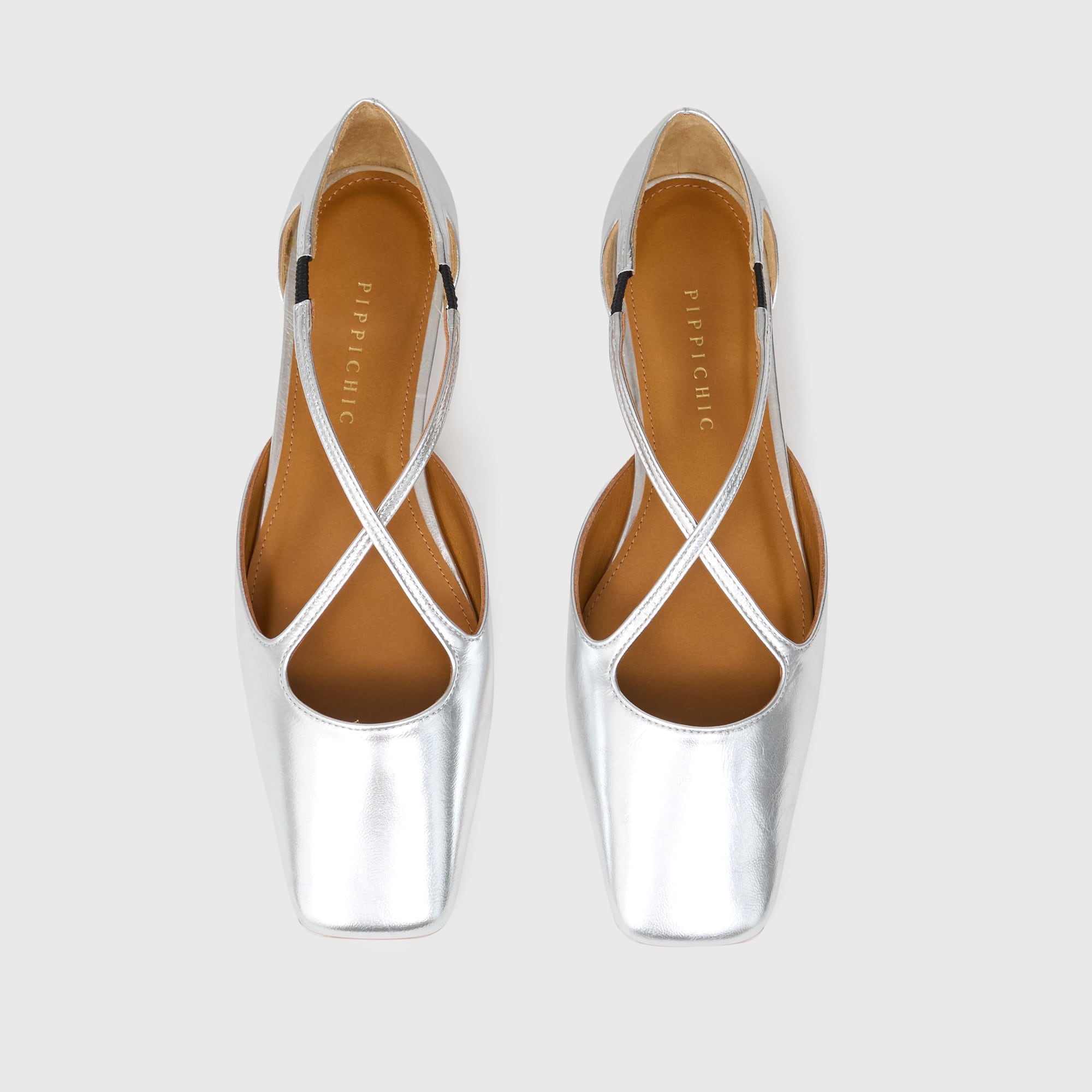 バレリーナのトゥシューズをイメージした可憐なストラップ使い。
